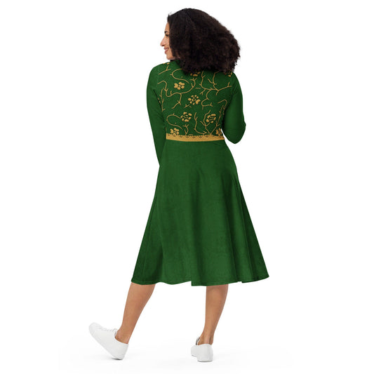 Princess Fiona Inspired All-over print long sleeve midi dress