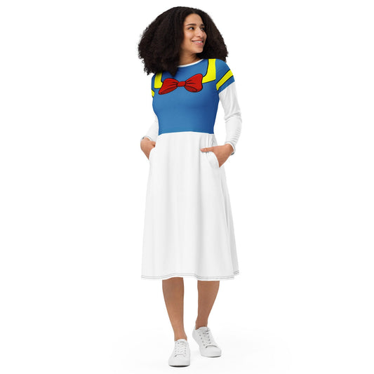 Donald Inspired All-over print long sleeve midi dress