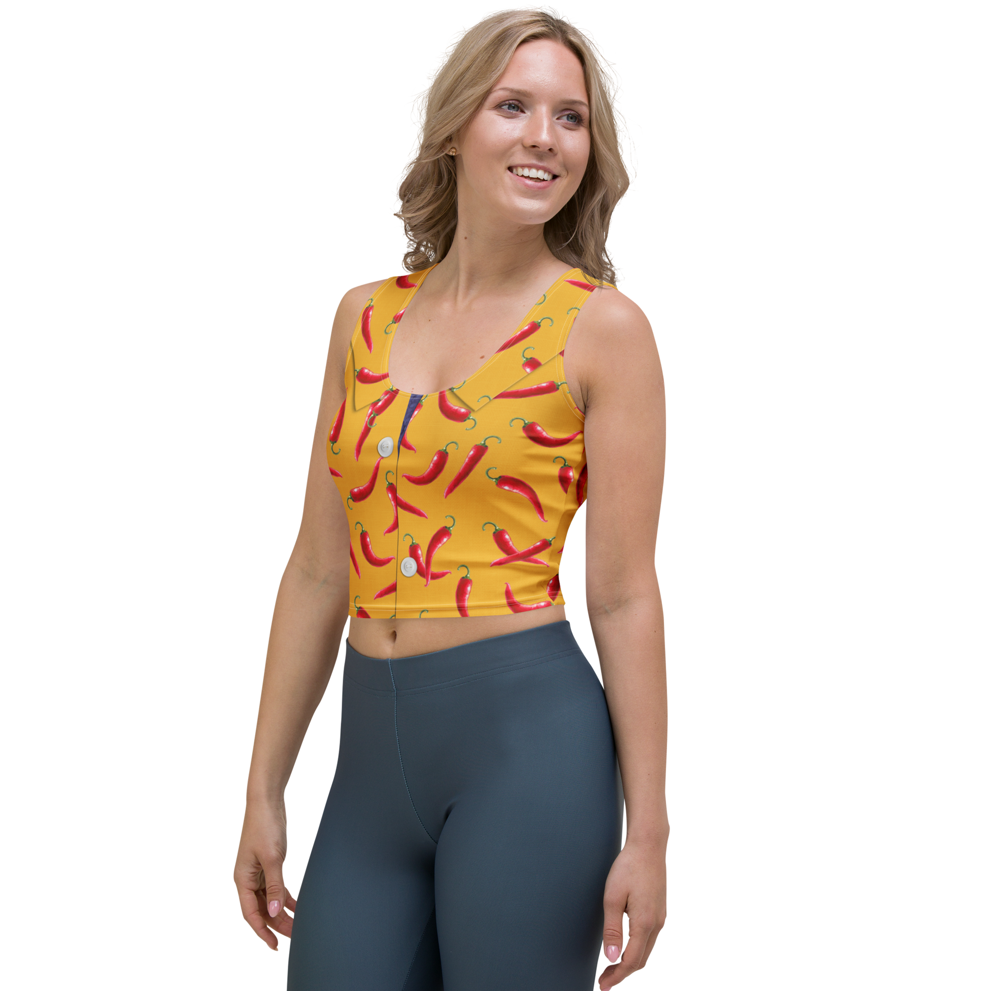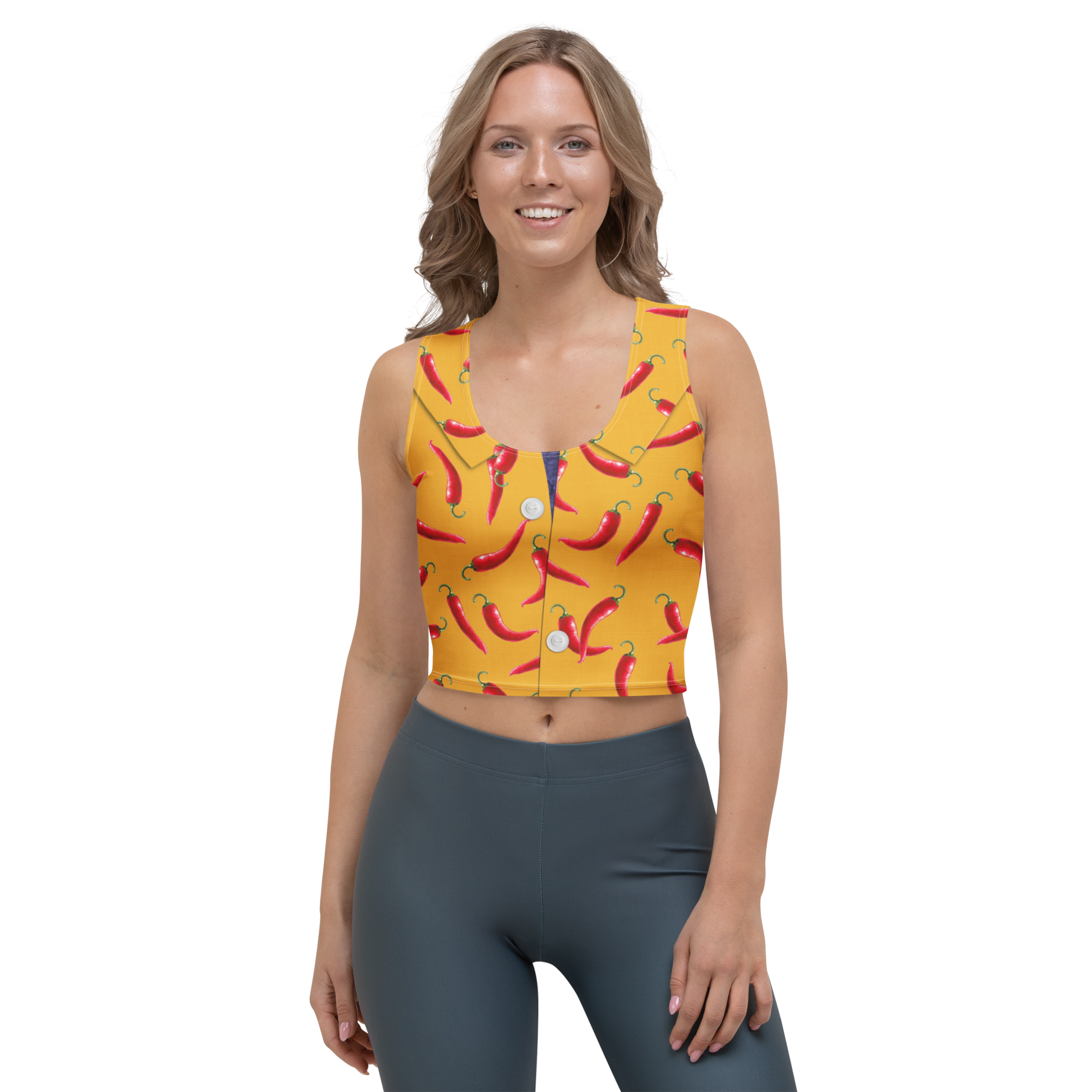 Look fabulous in an all-over printed, body-hugging crop top.