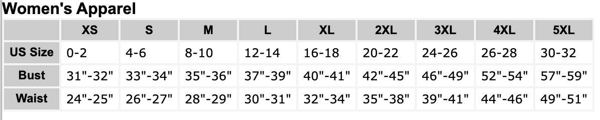 Printed on a 90% polyester, 10% spandex women's cut shirt in sizes XS-3XL.